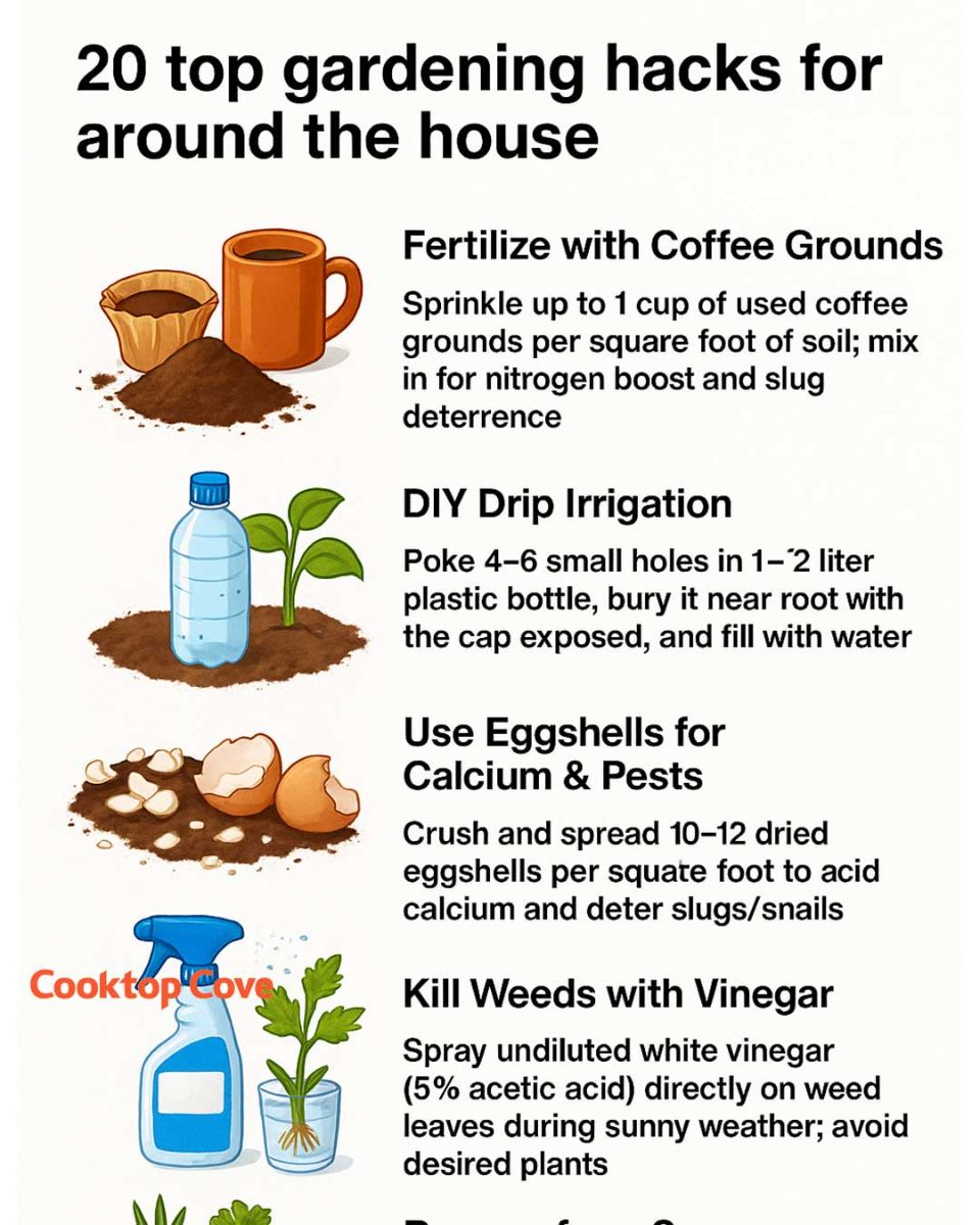 In this article, we will explore 20 top gardening hacks that you can easily implement around your house. These tips are designed to help you make the most of your gardening efforts, using simple and often overlooked materials that you probably already have at home. From natural fertilizers to ingenious planting techniques, these hacks will transform your gardening experience and help you cultivate a lush, thriving garden.