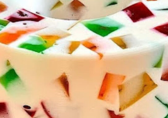 Half a cup (125 ml) of boiling water is all you need to dissolve the five flavored gelatins. Next, fill each with half a cup (125 ml) of ice water. Put each one in its own container and put it in the fridge until it sets completely.