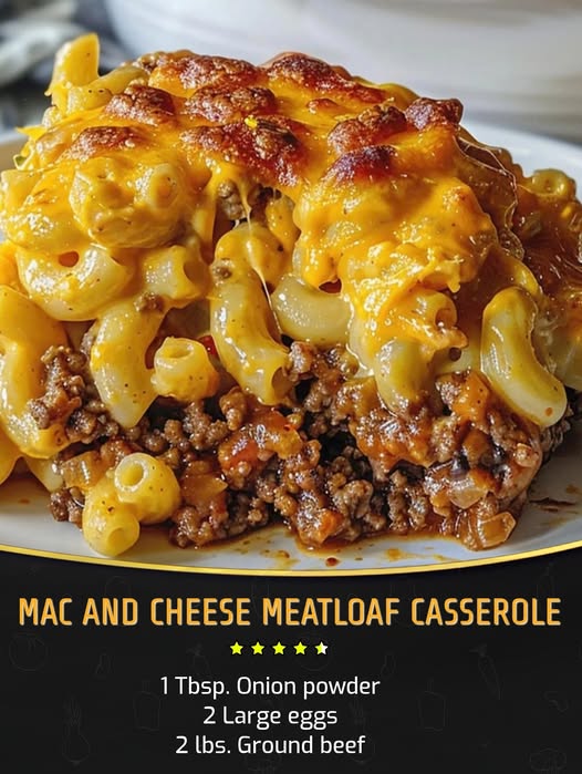 Imagine your kitchen filled with the comforting aroma of baking 🍲 Mac and Cheese Meatloaf Casserole, a dish that’s bound to become a new family favorite. This recipe is a delightful twist on classic comfort food, combining the creamy, cheesy 🧀 bliss of macaroni and cheese with the rich, savory flavor of homemade meatloaf. What sets this dish apart are the special ingredients: a touch of smoked paprika for that subtle smokiness, a blend of sharp cheddar and creamy gouda, and a perfectly seasoned meatloaf mixture. Each forkful offers a beautiful contrast in textures, from the tender pasta to the juicy meatloaf, all topped off with a golden, crispy breadcrumb crust. It’s not just a meal; it’s an experience, a perfect blend of flavors that elevates the classic mac and cheese to something truly extraordinary. 🌟