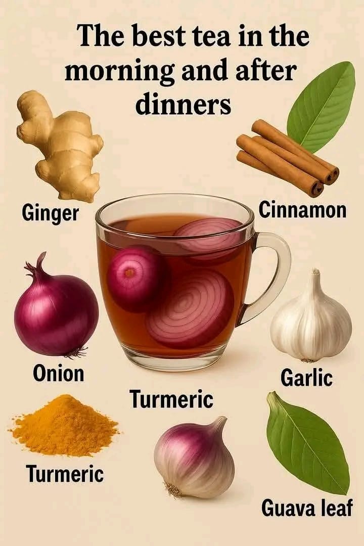 Starting your day with the right tea can set the tone for better digestion, improved immunity, and overall well-being. Likewise, drinking the same tea after dinner helps ease digestion, reduce bloating, and promote relaxation. The secret lies in the powerful combination of garlic, turmeric, onion, ginger, cinnamon, and guava leaves. Why This Herbal Tea Works Wonders