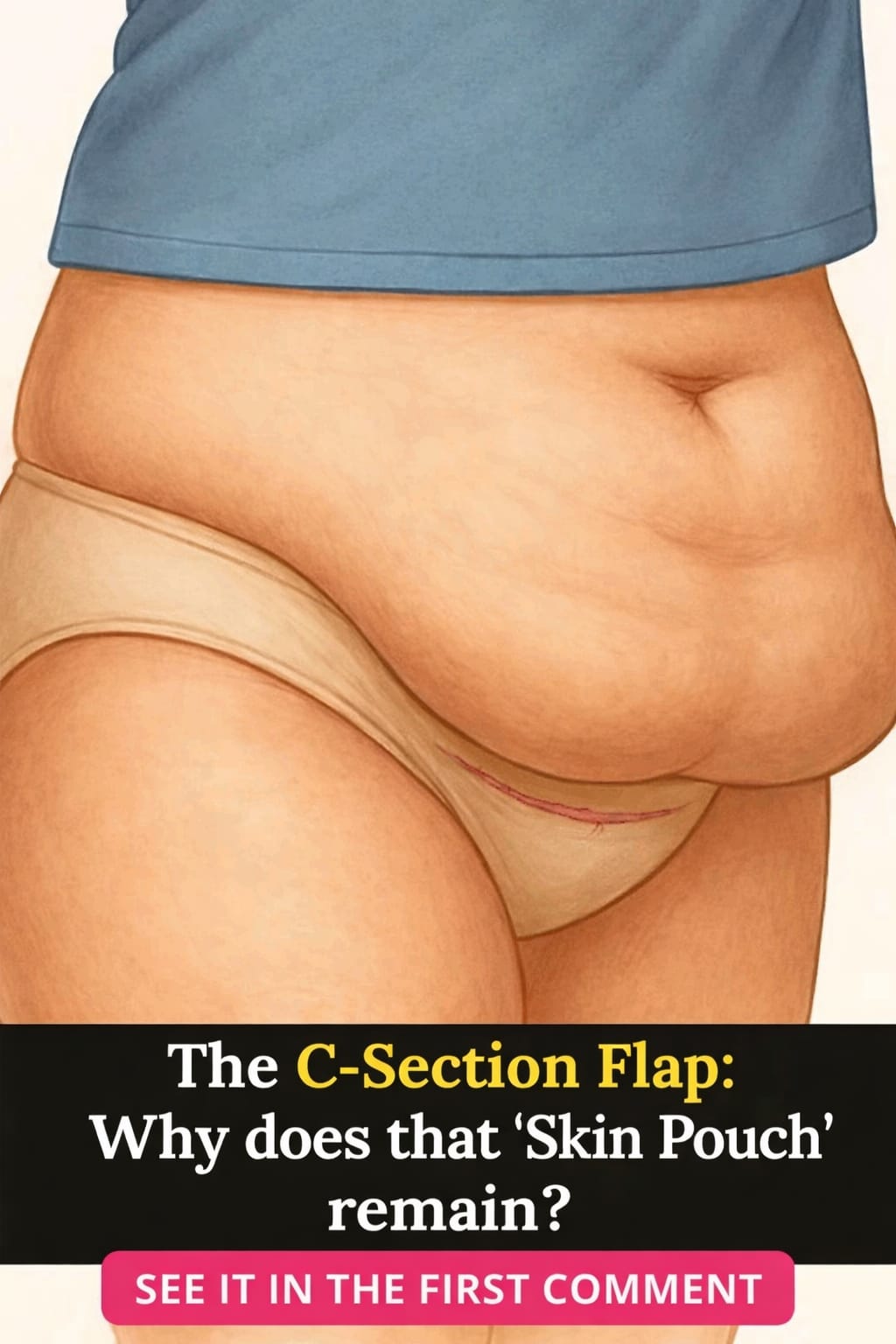 After undergoing a cesarean section, many women have reported a small “flap” or fold in the lower abdomen, just above the scar.